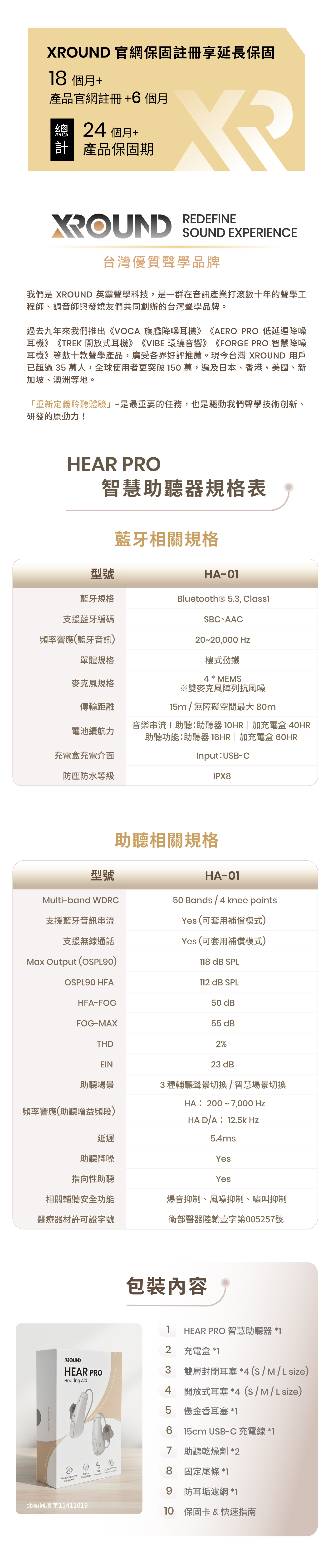 • HEAR PRO 智慧助聽器一組(含左耳、右耳、充電盒)